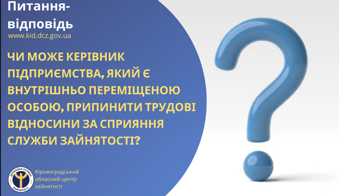 Чи може керівник підприємства, який є внутрішньо переміщеною особою, припинити трудові відносини за сприяння служби зайнятості?