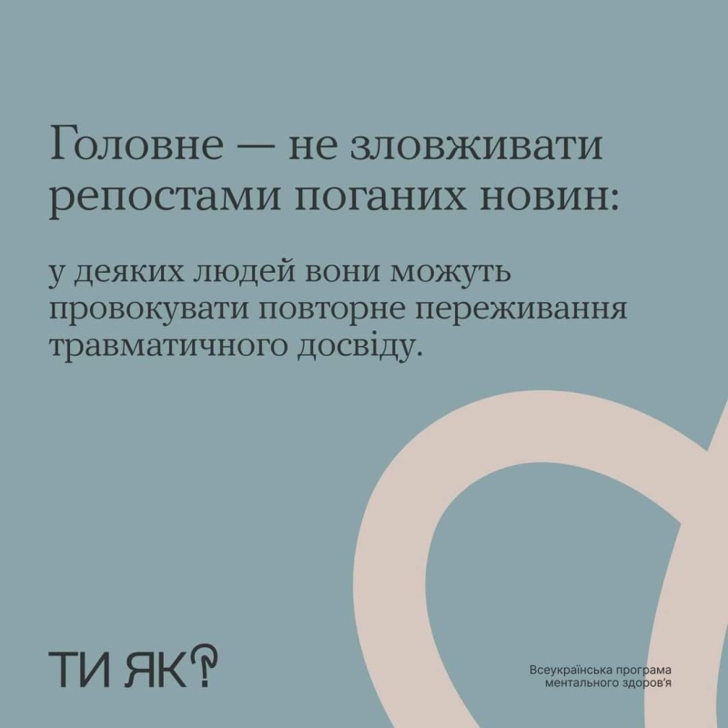 Публікацію підготовлено у межах впровадження Всеукраїнської програми ментального здоров‘я «Ти як?» за ініціативою першої леді Олена Зеленська.