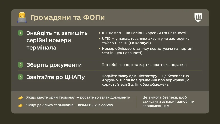 У Міноборони наголошують, що після верифікації користувачі й надалі зможуть користуватися Starlink без обмежень.