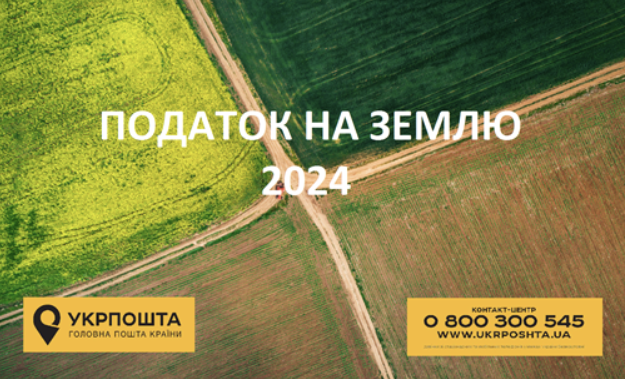 УКРПОШТА ПРИЙМАЄ СПЛАТУ ПОДАТКІВ ЗА ЗЕМЛЮ ТА ІНШІ ПЛАТЕЖІ