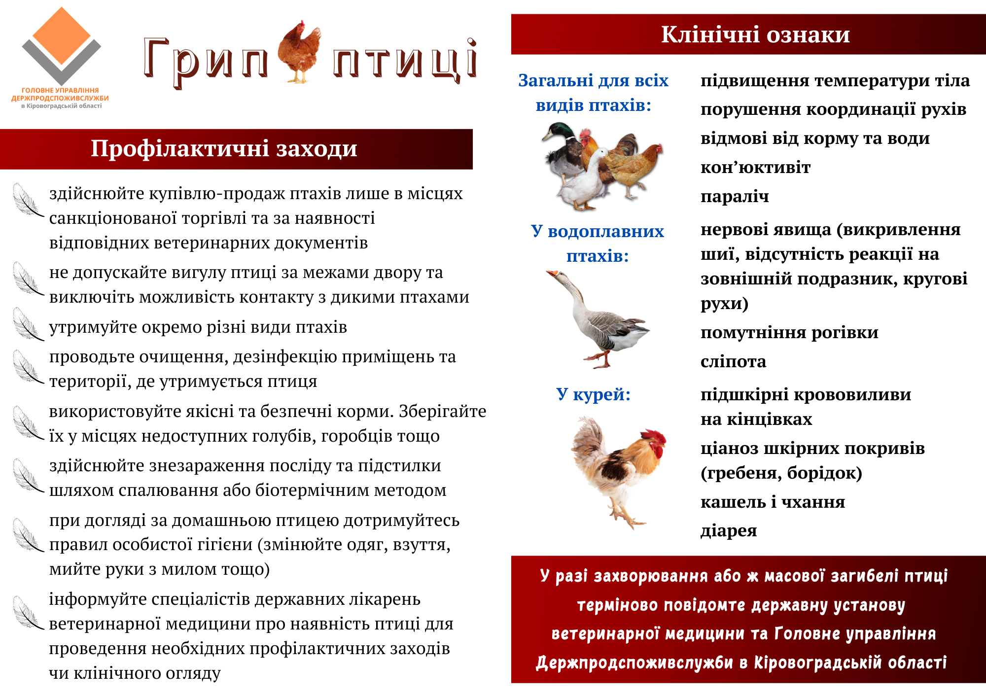 Кропивницьке районне управління Головного управління Держпродспоживслужби в Кіровоградській області застерігає громадян від купівлі живої птиці, яка не супроводжується ветеринарними документами.