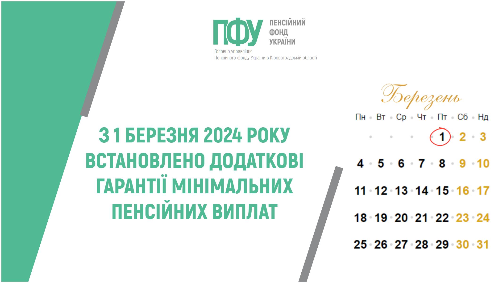 З 1 березня 2024 року встановлено додаткові гарантії мінімальних пенсійних виплат