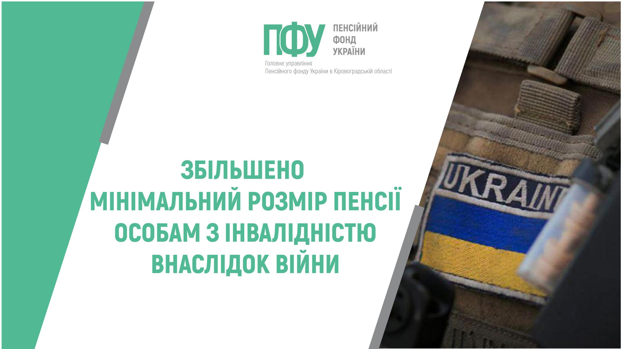 З 01 березня 2024 року визначено зазначеній вище категорії осіб у фіксованих розмірах. Зокрема, в особи з інвалідністю внаслідок війни І групи мінімальний розмір пенсії складає 15 347 грн, ІІ групи – 12 396 грн, ІІІ групи – 8 500 грн, учасника бойових дій – 4 958 грн.